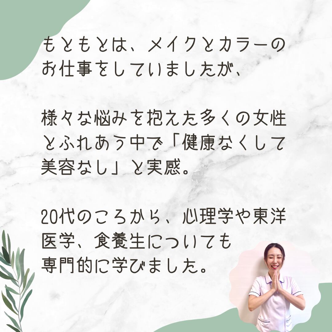 2006年から美容の仕事をしていましたが、妊娠出産をきっかけに、体調が激変しました。